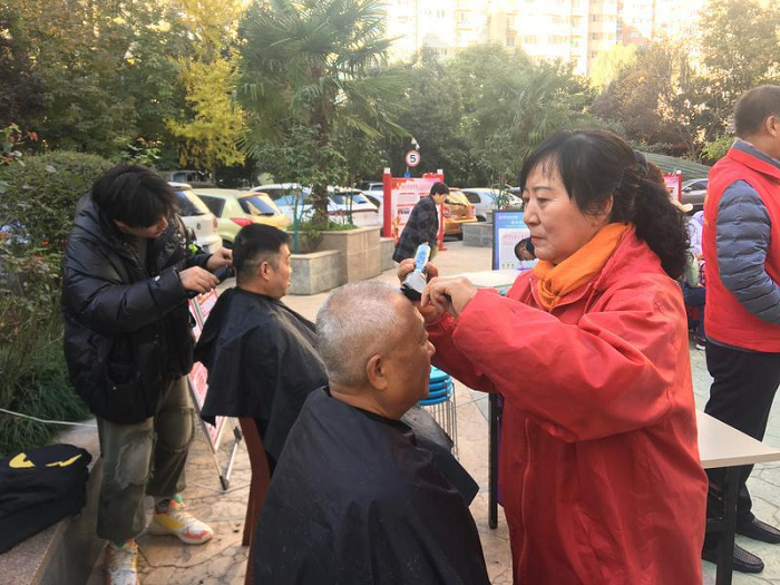 “老張,你頭發(fā)理好啦?”“好啦,好啦,你今兒也來了!”“那可不,這活動多好,家門口不花一分錢就把問題解決了!”活動現(xiàn)場熱鬧不已,政策宣傳、智慧助老、便民理發(fā)、口腔檢查、康復理療等十多個攤位從廣場兩邊依次排開,每個攤位前都人頭攢動。