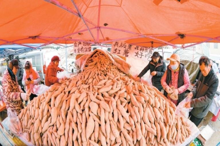 人們挑選紅薯。