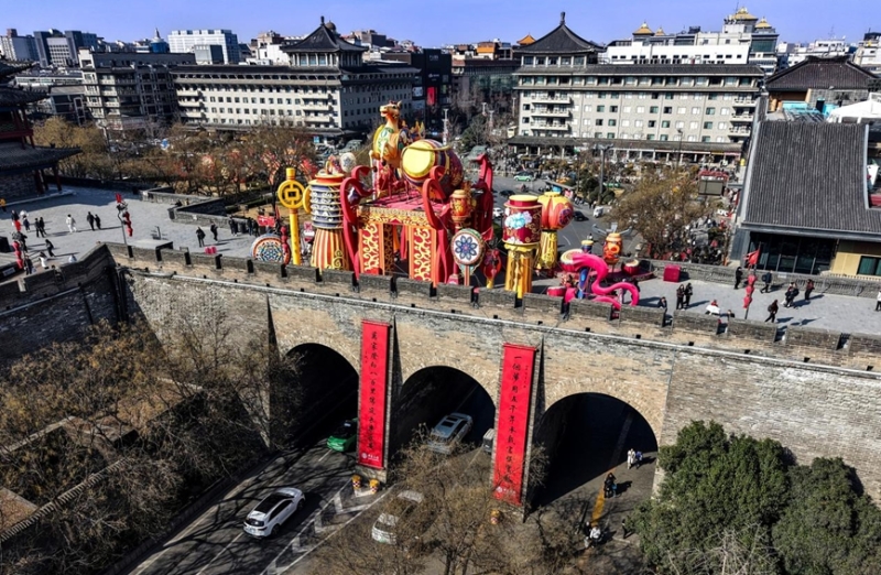城門上懸掛的巨幅春聯(lián)。西安城墻管委會供圖