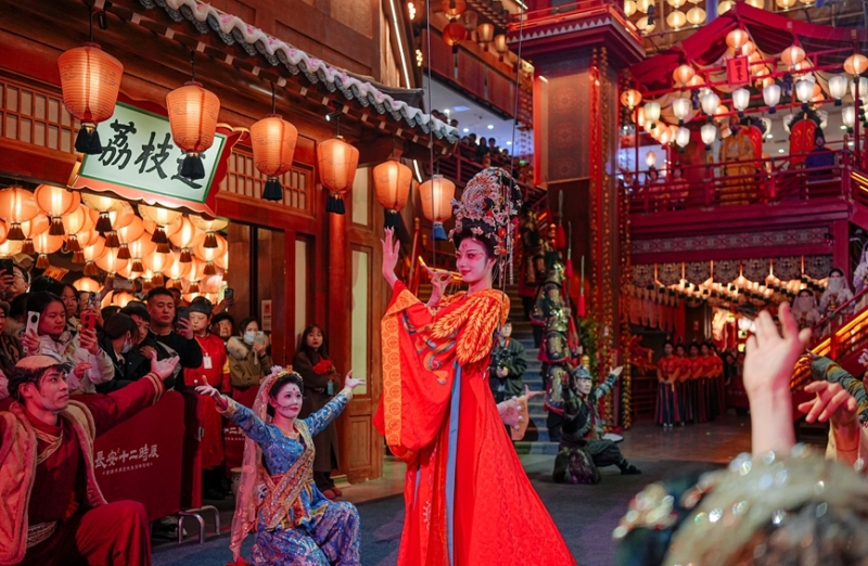 現(xiàn)場演出吸引觀眾駐足觀看。長安十二時辰供圖