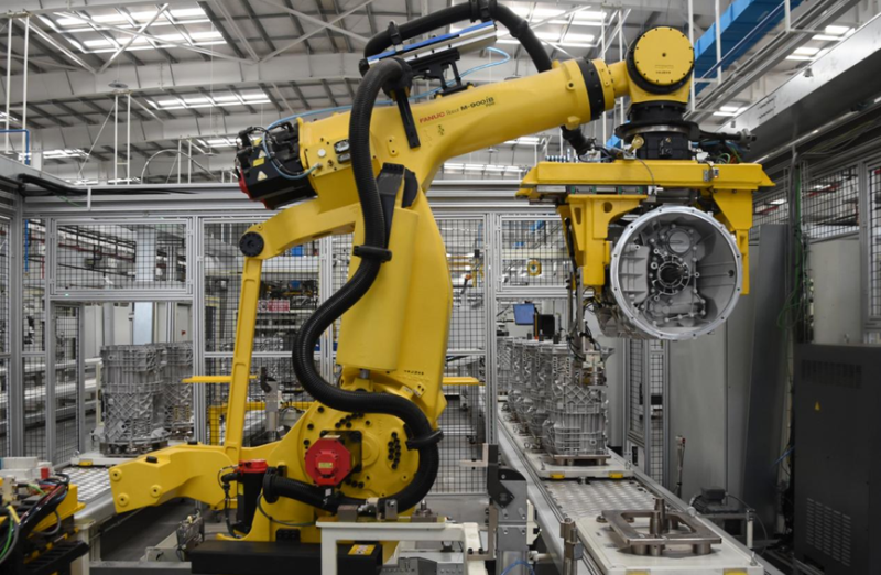 法士特生產(chǎn)線上,智能機械臂在抓取變速器殼體。法士特供圖