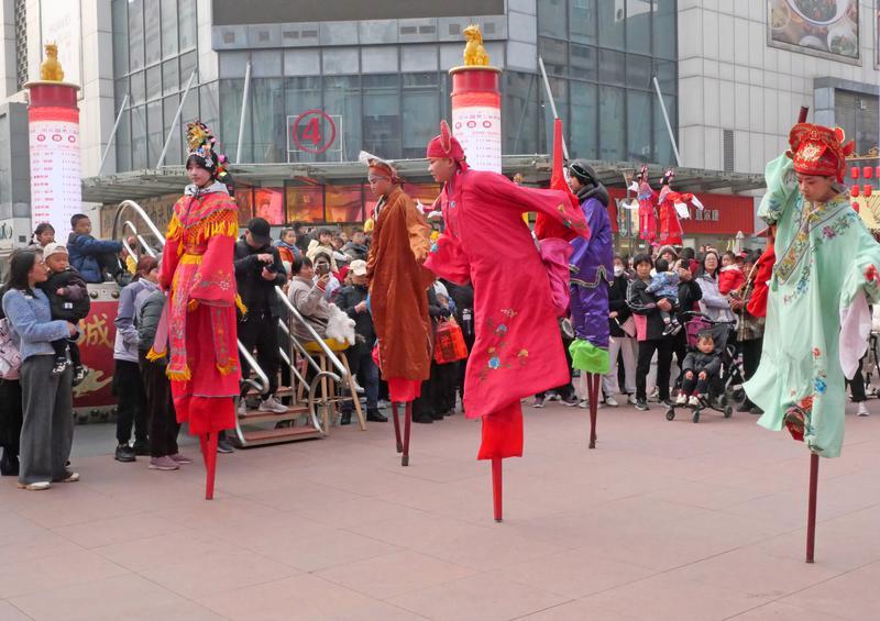 2月27日,西安皇城里?民樂園第三屆新春文化節(jié)火熱進(jìn)行中。高蹺、背芯子、舞龍、舞獅等非遺社火表演輪番登場(chǎng),身著彩衣的藝人踩高蹺騰躍,精巧的背芯子驚艷亮相,紅黃舞獅與祥龍穿梭人群,不時(shí)與觀眾互動(dòng)。精彩紛呈的非遺展演吸引大批市民駐足拍照,現(xiàn)場(chǎng)鑼鼓喧天、人氣爆棚,濃濃的年味兒彌漫在街頭巷尾,盡顯西安新春的熱鬧與喜慶。