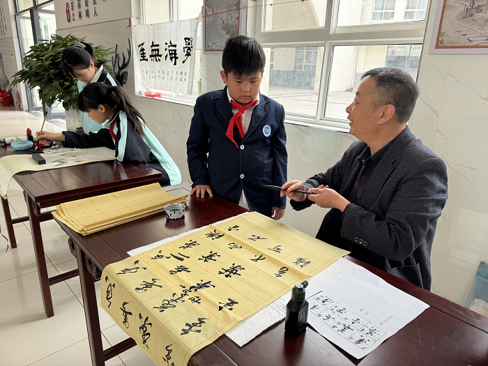 依托滋水小學唐詩文化校園建設基礎,活動期間同步開展趣味飛花令詩詞比拼,圍繞“山”“水”“月”等經典詩詞意象開展互動對決,以趣味比拼激發(fā)學生詩詞誦讀和經典積累熱情?;顒舆€邀請縣書畫文藝志愿者進校園,組織開展筆墨繪唐詩創(chuàng)作實踐,將唐詩文化與書法、美術藝術有機融合,讓學生在筆墨創(chuàng)作中感悟詩畫交融的傳統(tǒng)文化魅力,切實做到以詩育人、以文化人。