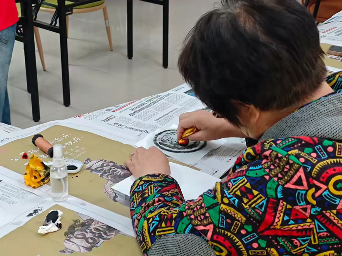活動現(xiàn)場,工作人員提前準(zhǔn)備好瓦當(dāng)模具、宣紙、拓包、墨汁等專業(yè)工具,非遺老師耐心講解瓦當(dāng)?shù)臍v史文化、拓印的核心技巧與操作流程:從浸濕宣紙、平穩(wěn)覆蓋瓦當(dāng),到輕輕拍打壓實、均勻蘸墨拓印,每一個步驟都細致講解、逐一示范,居民們滿懷期待地動手實踐,輕握拓包,反復(fù)均勻拍打,墨色慢慢暈染,古樸精美的瓦當(dāng)紋飾逐漸在宣紙上清晰呈現(xiàn)。